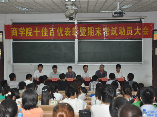 为充分发挥优秀学生在校风、学风建设和人才培养中的示范和榜样作用,进一步推动学院学风建设,6月7日下午,商学院在东校区3号教学楼109室举行第一届十佳百优表彰暨期末考试动员大会。商学院党委书记段福兴,院长李平,党委副书记刘伟,副院长崔会保、高峰以及商学院部分老师和学生干部参加此次会议,活动由商学院团委书记、学生管理科科长郝鹏主持。