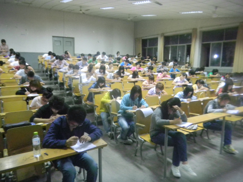 笔试题目以学校、学院现状为基础,结合了公务员考试题目内容,形式以填空、选择和简答为主。竞选者在考场中答题认真,考风良好。