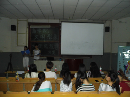 6月14日晚,商学院文明形象大使选拔赛决赛在1号教学楼西一合堂举行。个学生组织代表担任此次比赛评委。