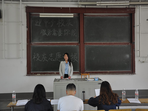 本次面试之前,该活动负责人对提交报名表的同学进行了初步筛选,并对入选的同学进行了分组面试。对他们在校史、淄博周边情况等问题的了解进行了着重考察,最终选出了能代表我校风采的19人来担任校庆六十周年活动的志愿者,其中接待志愿者13人、礼仪志愿者2人、会务志愿者2人、引导志愿者2人。