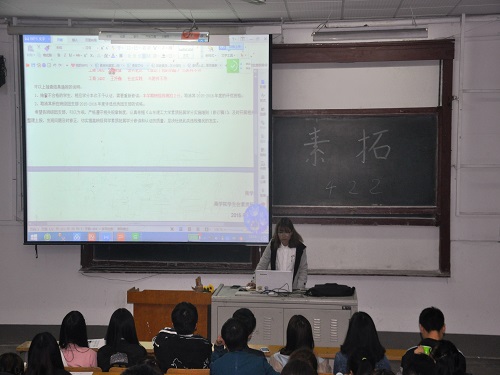 319日晚,我院在一号教学楼东二合堂举行本学期的素质拓展宣讲会。此次宣讲会由院学生会素拓部部长李梦含主讲,我院141516级部分学生代表参加。