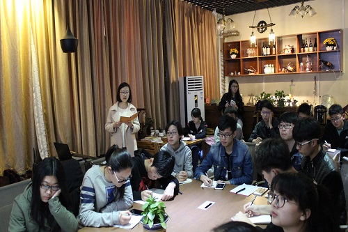 会议伊始,徐晓艳以“科创比赛的推荐”为切入点,介绍了 “挑战杯”、“创青春”、“邮储杯”等九个比较有代表性的创业比赛。她就创业比赛的参赛要求、赛事安排、报名方式等要点向同学们进行了详细的介绍。会议过程中,她分享了自己之前参加科创比赛的经历和经验,并对其中容易出现的问题做出了讲解。她鼓励大家去关心社会热点,关注感兴趣的实事,充分利用自己的人脉进行跨专业跨学院组队。随后,她重点强调要发挥自己的创新能力,侧重“大同小异”中的“小异”,通过改变细节去创新,因为创新往往源于生活中的细微之处。