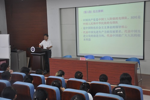 随后,高厚礼为全体人员做《学习党章·总纲》专题党课,从党的性质、指导思想、奋斗目标、行动方略、党的建设和党的领导六个方面学习党章的24个自然段。党课开始,他介绍了党的性质及指导思想,并指出实现共产主义是我党最高理想和最终目标,在新世纪新阶段,经济和社会发展是实现“两个一百年”奋斗目标。在行动策略上,要坚持走中国特色社会主义道路,坚持“一个中心,两个基本点”的基本路线,坚持“五位一体”的总体布局,发展社会主义市场经济。在党的建设上,必须坚持四项基本原则。就党的领导问题,高厚礼讲到,党的领导主要是政治、思想和组织的领导,要做到“八个必须”,把我国建设成富强、民主、文明、和谐的社会主义现代化国家。