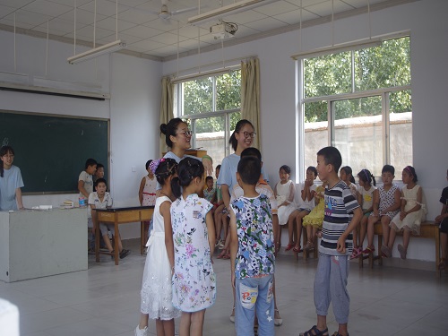 刘凡、杨洪欣、赵文洁、薛亚东对学生进行破冰团辅,拉近与学生之间的距离,并向学生介绍支教课程,激起学生的学习兴趣,与学生交流感情,搞好关系。辛承华维持会场秩序,郭昌乐拍摄照片。会议召开完毕,同意参加此次支教的学生进行登记报名,并签订安全责任书,所有家长均同意接送学生,保障学生在来返学校之间的安全。