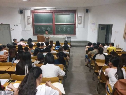 9月7日晚,太阳成集团tyc122cc入口宿舍管理委员会东区分会在一号教学楼东一合堂召开了新学期的第一次全委会。此次会议由宿管委主席刘鹏振主持,宿管委主席团部长以及宿管委全体人员参加。