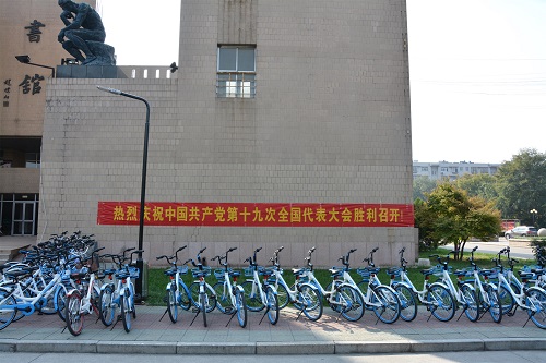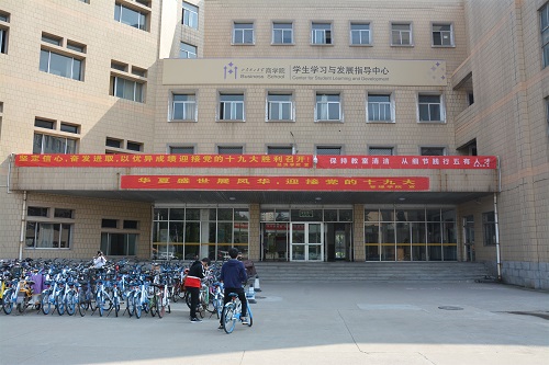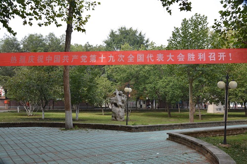 为了响应党的号召,学校里也充满了十九大的气息,到处可见管理学院的条幅。