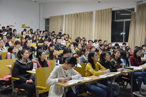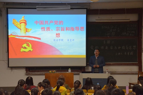 1025日晚,管理学院于一号教学楼东一合堂教室举行“党的性质、宗旨和指导思想”专题党课。此次党课由经济学院党总支副书记朱星辉主讲,管理学院辅导员于国良、经济学院辅导员毛婷及入党积极分子代表参加。