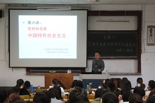 此次党课的主题是坚持和发展中国特色社会主义。随后,张双从中国特色社会主义是什么、从哪里来、要到哪里去、由什么构成、“我”该怎么做四个方面,对中国特色社会主义作出了全面讲述。紧接着,他回顾了中国近代的发展历史,着重介绍了新民主主义革命的胜利、社会主义的建设、改革开放和社会主义现代建设,强调了中国共产党在中国的建设和发展历史上做出的卓越贡献。接下来,他向入党积极分子详细地讲解了中国特色社会主义的本质、架构、原则等,使众多积极分子对中国特色社会主义有了更深层的了解。