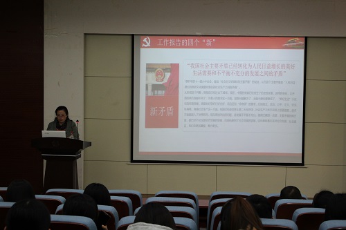 最后,于国良对十九大报告中提出的“新时代”、“强起来”等十大关键词及“青春梦想”、“坚持党对一切工作的领导”等新提法、新举措做了简单介绍。(高文霞 李雪颖