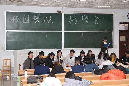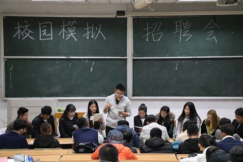 11月20日晚,管理学院于三号教学楼109教室举行校园模拟招聘会比赛,此次比赛由院学生会就业服务部主办,就业服务部志愿服务人员贾惠茹、赵晓雯主持,部分学生代表参加。