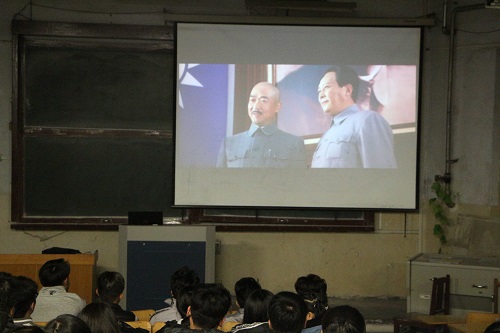 影片《建国大业》以重庆谈判到建国前夕为背景,正面再现共和国多党合作和政治协商制度从诞生到确立这一重大历史事件。这部影片讲述了从1945年抗日战争结束到1949年建国前夕过程中发生的一系列故事。其中,该影片依次展现了重庆谈判,双十协定,定都北平,政治协商以及以黑白史诗片段为表现形式的辽沈战役、渡江战役,开国大典等具有重大历史的事件。展示了中共中央在克服重重困难后,召开政治协商会议,组织各民主党派、各人民团体以及社会贤达,讨论与实现召开人民代表大会,最终成立新中国的历程。短短两个多小时,同学们仿佛回到了那个艰难而又催人奋进的岁月中,去追忆那段历史,缅怀远去的革命先辈。