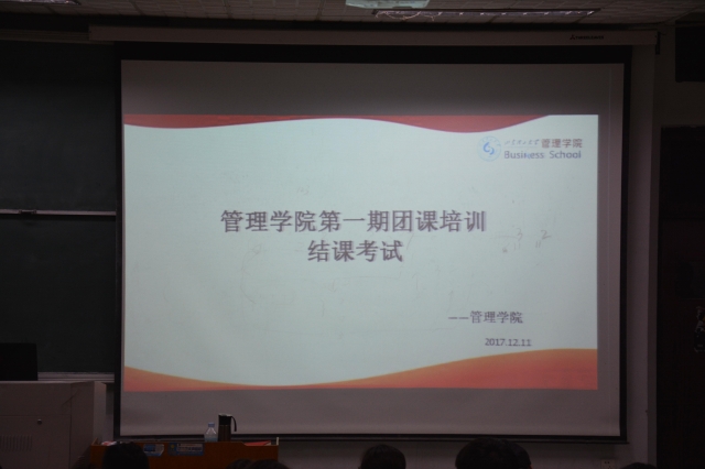 12月11日,管理学院于三号教学楼307教室举行第一期团校培训结业考试。此次考试采取答辩模式,由学生会、新闻中心主席团担任点评团,两大组织部长担任评审团,文艺部部长张潇文担任主持。部分学生代表参加。