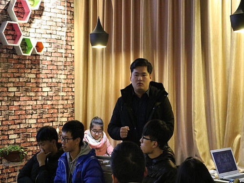 活动伊始,包俊杰他们团队从得知讯息到全面准备的过程与同学们进行分享。认为,创意是决定成败的关键,他们得以获奖,好的创意起到了根本性的作用。他讲到,一个团队的成功,需要有明确的分工和团队精神,多与老师交流,学习借鉴他们的思维方式,可以少走弯路。