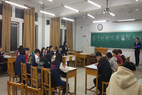 为进一步提高学生的综合素质,丰富校园生活,选拔优秀辩论队伍。4月23日晚,“晏子杯”辩论赛管理学院专场在3号教学楼202、203教室举行。此次活动由管理学院学习部相关成员主持,学生会部分部门负责人担任评委,学院17级各班代表队参加。