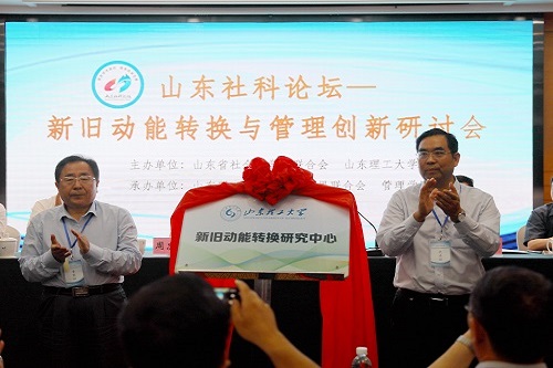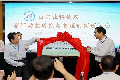 5月26日,太阳成集团tyc122cc入口新旧动能转换研究中心揭牌仪式在太阳成集团tyc122cc入口国际学术交流中心举行,山东省社会科学界联合会党组副书记、副主席周忠高与太阳成集团tyc122cc入口党委书记吕传毅为中心揭牌。