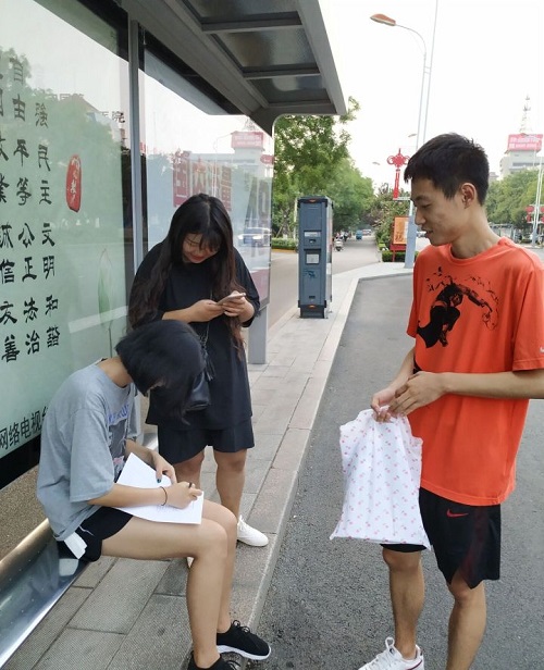 7月15日、16日,“红色足迹”团队社会实践活动正式开始,这两日团队兵分两路,将团队围绕社会实践主题制定的调查问卷从纸质分发和网络传播两种方式进行调研。问卷向不同年龄阶段、不同受教育水平的群众发放,根据调查结果进行分析研究,更好的为接下来有目的、有重点的实践活动打下基础。问卷涉及被访问者对台儿庄古城基础设施的体会和建议, 大部分被访者认为,台儿庄古城景区内基础设施较为完善,住、购、食、娱等各方面都令人满意;古城外基础设施则较差,食与购等较为不便,还有待改善。纸质问卷发放过程较为顺利,偶尔有被访者不接受问卷现象的产生,这可能与团队选取的发放地有关,吸取这次教训,团队表示下次一定可以做的更好。