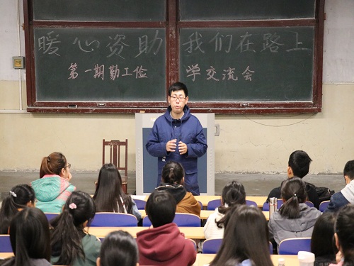 11月15日晚,管理学院在四号教学楼104教室开展“暖心资助,我们在路上——第一期勤工助学交流会”活动。此次活动由院辅导员张仕杰主讲,部分学生参加。
