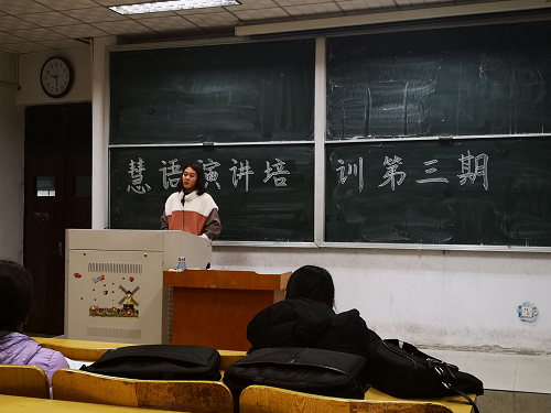 2018年12月8日晚,慧语口才联盟举行第三期演讲培训。此次培训由慧语口才联盟会长赵修岩、主持部部长薛白、新闻部部长王月,部分18级学生参与。