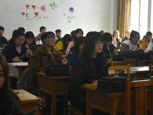 培训伊始,赵梦媛向大家介绍尤克里里的基本构造,以及尤克里里的材质、琴弦、弹奏方法等,使大家对于尤克里里有更深的理解。紧接着由陈弘历为大家讲解什么是琴谱,如何看琴谱,以及琴谱上的各种音乐符号。让大家对琴谱有最基本的认识,在大家有这方面的基础过后,便由陈弘历向大家演示C大调音阶,并教给大家如何去按品,如何播弦,进而进行下一步的教学。大家都认真听着,牢牢记着,仔细弹着。大家与身边的人及时交流学习过程中所遇到的问题,并互相帮助。场内一度充满浓郁的学习氛围。为巩固大家所学习的内容,使同学们更快的学会尤克里里,赵梦媛留下有趣的课堂作业。在一曲优美的琴声中,本次培训会结束。