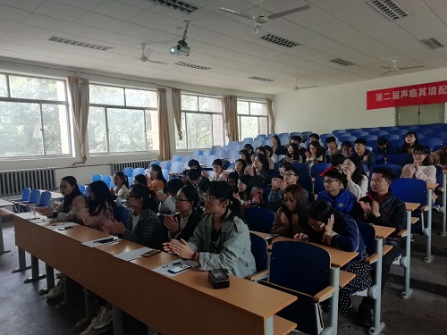 活动伊始,杨彤、王云云宣布比赛规则、介绍评委、说明比赛要求,参赛人员在规定时间内完成自己的配音片段,单人组队同学在3分钟内完成配音,多人组队的成员配音时间不超过人数与1.5分钟的乘积,要求参赛者自行准备配音材料。