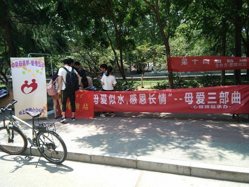为了让更多的同学们了解到母爱三部曲活动的具体内容,心晴驿站联合学生会实践部于5月5日至5月10日在东校区齐园餐厅门口进行活动宣传。此次活动由心晴驿站会长王立焕的负责。