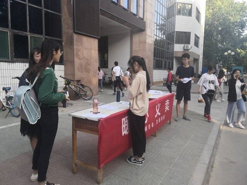 宣传活动开始前,同学先去布置宣传地点,将条幅,单页,音箱等都准备好。随后,等到下课,人流量大起来,各个部门的同学拿着单页进行宣传,在发单页的同时将活动的细节及意义认真的讲给有兴趣的同学,消除同学们对本次活动的的不解之处。帮助同学们更好的了解本次活动。