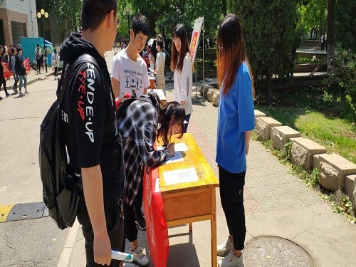 56日,实战营销社团举办全国大学生海洋文化(青岛啤酒)创意设计大赛线下宣传活动,此次活动由会长柳君晓及各部门部长负责。