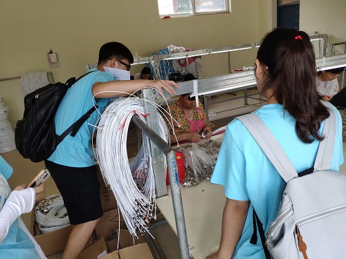 活动伊始,助梦队全体成员顺利抵达单县贺村。路旁绿植长得很旺盛,房屋整齐地排列在两边,大多都是砖房、平房,村民的房子聚集在一块,成片分布,房屋后面是大片农田。随后,实践团在村民的指引下到达电子厂。一路上,团队成员共同讨论需要准备的问题、会遇到的情况及应对措施。经工厂负责人讲解,该电子厂主要生产日常生活中常用的数据线,属于劳动密集型的工厂,主要负责将买家发来的配件进行组装,工作轻松且时间灵活,可以雇佣村里要干农活或者需要照顾孩子、老人抽不开身的妇女等,工厂位置良好,临近贺村幼儿园,方便员工照顾孩子。同时,工资采取计件方式,可根据个人时间与能力合理安排,利用闲暇时间补贴家用。此外,电子厂主要是订单生产,每完成一笔订单,收益的一部分就会分配到村里的扶贫办,由扶贫办将这笔资金发给村里的贫困户,帮助其改善生活。电子厂员工谈到,在电子厂组装数据线,一天能做700余个,能够挣二、三十块钱,工作的时间灵活,有充足的时间照顾孩子和老人。