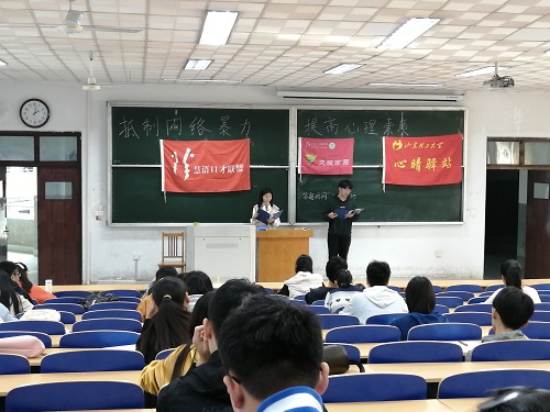 113日下午,由学生工作处、学生心理健康教育与咨询中心主办,慧语口才联盟、文毅家园和心晴驿站承办的“抵制网络暴力,提高心理素质”活动于东校区三号教学楼210教室开展。慧语口才联盟主持部成员杨德龙、陈亚担任此次活动的主持人,慧语口才联盟副会长杨彤等人担任评委。