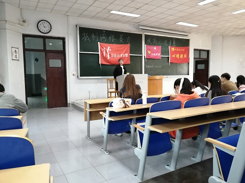 此次活动分为两个环节,第一环节为答题环节,分数占总分的60%,由参赛人员现场答题。第二环节为演讲环节,分数占总分的40%,由参赛人员进行三到五分钟的演讲,并有评委打分。活动开始前,参赛人员在比赛前陆续入场,现场工作人员开始准备签到,核对人员信息。活动伊始,现场工作人员调整人员坐席,并分发参赛试卷,参赛人员开始答题,答题时间为三十分钟。答题结束后,工作人员组织参加第二环节的参赛人员抽号确定演讲次序,登记成员信息。抽号结束后,现场留出十分钟左右的休息时间,并让演讲者准备演讲内容。