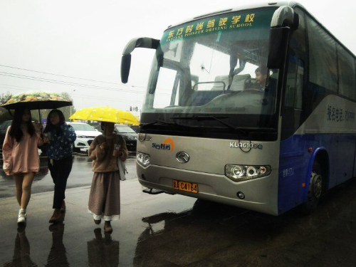 本次活动分为三个环节,依次为企业参观,观看驾驶安全视频,同学体验学习。活动伊始,参观的同学乘车到达目的地,雨势渐大,热心工作人员为同学们准备备用雨伞,同学们排队有序进入。