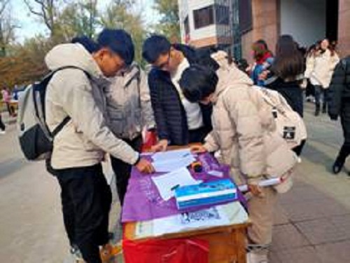 宣传活动前,相关负责人定制宣传横幅,印制宣传单页,王肖肖向宣传人员详细介绍大学生创业管理论坛活动的相关内容。宣传过程中,采用挂横幅和发放单页的方式进行宣传,宣传人员为前来咨询的同学们详细讲解活动时间、活动地点及赛事流程、比赛规则、参赛方式等相关事项,宣传现场气氛热烈。通过宣传人员的详细介绍,有利于同学们对大学生创业管理论坛活动有更深程度的了解,宣传人员还引导同学们加入QQ在线交流群来进一步了解活动,更有不少同学直接扫描二维码报名参赛。