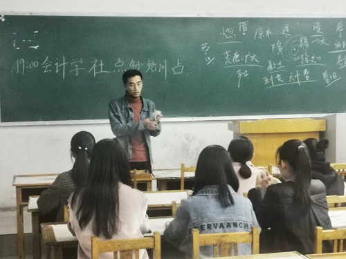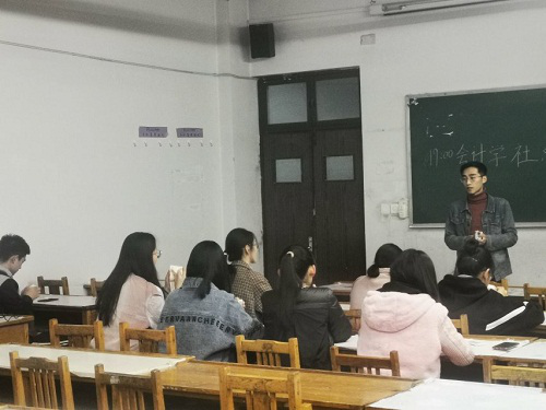 为贯彻“五有人才”指导思想,培养有社会责任,有创新精神,有专门知识,有实践能力,有健康身心的五有人才,会计学社开展“挑战者联盟”活动,此次活动分为财会小知识、激情点钞、智慧搭桥三个环节。为使同学们掌握更多的点钞技巧,加快点钞速度,11月8日晚,会计学社于3号教学楼205教室开展点钞培训。