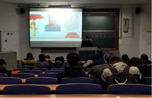 2018年12月26日举办纪念毛泽东诞辰主题教育活动,邀请马院教师上一堂毛泽东思想讲解课。支部成员牢固树立了“不忘初心性跟党走”的坚定信念,勇于担当时代赋予的责任。