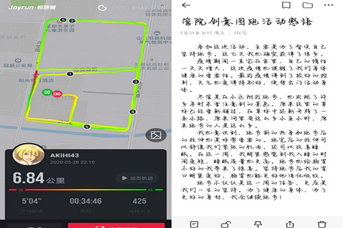 “生命在于运动,更确切的说生命在于跑步。”为使同学们加强体育锻炼,享受美好生活,养成良好的运动习惯,文毅家园于5月23日—5月31日举办“管理学院创意图跑”线上活动,此次活动共有100多名学生参与。