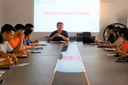 9月9日下午,管理学院于4号教学楼204会议室召开学生会工作改革部署会,会议由学生会指导老师张仕杰主持,学生会全体成员参加。