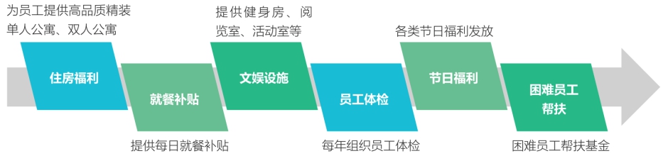 多样化员工福利,提供岗位津贴、精装单人公寓、文娱设施和员工体检等福利;