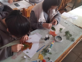 此次活动分为三个阶段,第一阶段是书签制作,每一小组使用现场准备的树叶以及本组所携带的辅助工具,在规定时间内完成书签的制作。制作的书签以环保为主题,同时能够反映作者的环保理念。比赛开始后,参赛人员分成两队分别前往205教室和206教室进行创作。期间工作人员对其过程及作品进行拍照。活动中参赛选手有的用颜料直接涂在树叶上作出一幅幅美妙的图画,有的把自己带的小饰品粘在树叶上,使得书签更加与众不同。书签制作完成后返回210教室进行活动的第二阶段。
