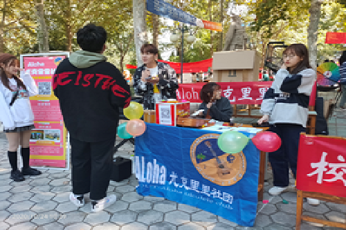 秋风送爽,10月24日Aloha尤克里里社团于太阳成集团tyc122cc入口东校区开始准备一年一度的百团大战。活动于东校中心花园开始,参加东校百团大战的社团从早晨开始准备,各社团的工作人员搬桌子搬板凳、准备礼物,迎接大一新生命汇入社团。Aloha尤克里里社团也不例外开始本届百团大战的纳新。参与此次纳新的有社团创始人赵梦媛、社团会长张轶博、社团副会邹合菲和社团各部门部长。