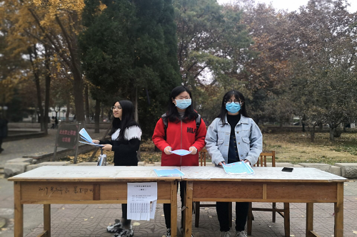 宣传活动前,相关人员印制宣传单页,赵俊林向宣传人员详细介绍红色文化设计大赛活动的相关内容。宣传过程中采用发放宣传单页的方式进行宣传,宣传人员为前来咨询的同学们详细地讲解此次活动的时间、活动地点及赛事流程、比赛规则、参赛方式等相关事项,宣传现场气氛热烈。在宣传人员的详细介绍下,同学们对红色文化设计大赛有了更深程度上的了解,并通过加入QQ在线交流群进一步了解活动,更有不少同学直接扫描二维码报名参赛。