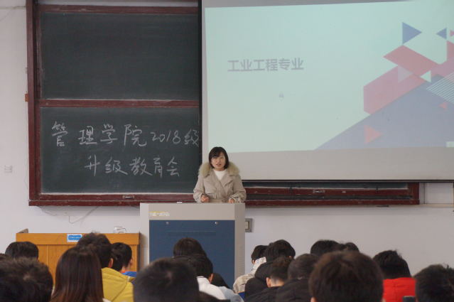 12月1日上午,管理学院于1号教学楼103教室举行2018级升级教育会,此次会议由学生科辅导员靳祺主讲,2018级工业工程专业全体学生参加。
