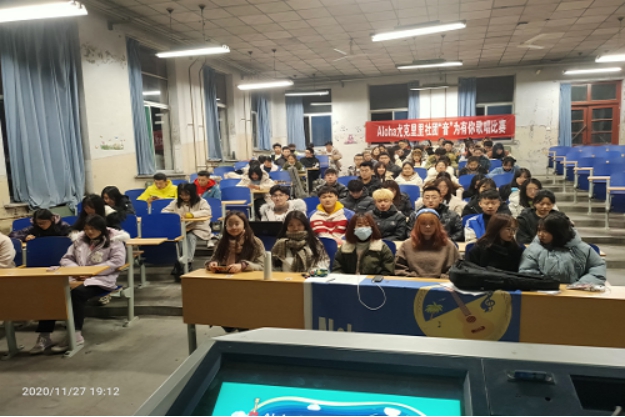 Aloha尤克里里社团于11月28日晚于东校区四号教学楼二楼报告厅举行管理学院“音”为有你歌唱活动,该活动由Aloha尤克里里社团承办,管理学院同学报名参与。此次活动由社团会长及相关负责人担任评委。