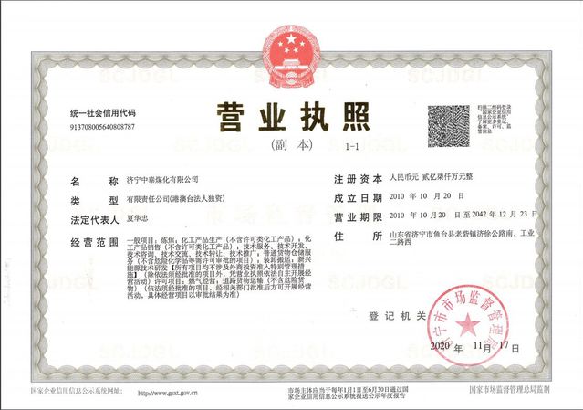 公司地址:山东省济宁市鱼台县,济宁中泰煤化有限公司东厂。