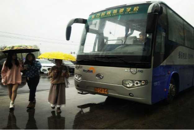 此次活动分为三个环节,依次为企业参观,观看驾驶安全视频,同学体验学习。活动伊始,由东方时尚驾校专车送同学们到达目的地,到达目的地,雨势渐大,热心的工作人员为同学们准备备用雨伞,讲解一些注意事项,随后同学们排队有序进入。