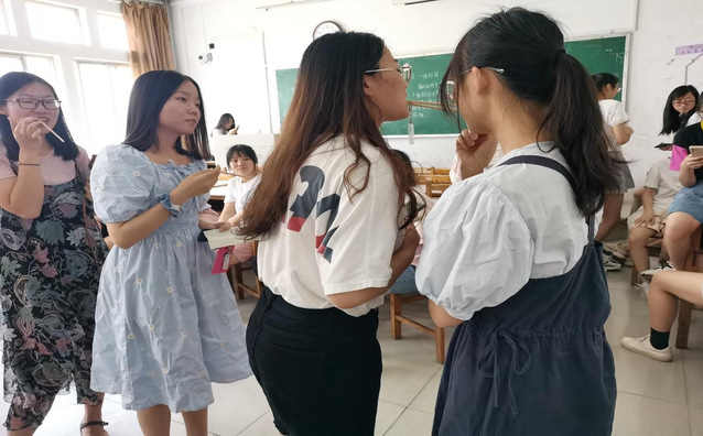 此次活动分为“你画我猜”、“管道运输”、“一站到底”三个环节。活动伊始,工作人员宣读活动规则和评分标准。各队进行抽签决定上场顺序。第一环节“你画我猜”中,学生有序排队,队首学生根据给出成语画一幅简笔画,画中不得出现任何文字,队伍成员依次根据个人理解再画一幅画,照此传递,最后一位同学猜出成语。工作人员记录时间,并且依据时间进行排名。此环节培养学生积极应对问题,参与团体活动,唤起内心童真。第二环节“管道运输”中,每人咬住一支吸管,在不接触吸管的情况下,将吸管上的钥匙环传递,各参赛学生积极配合,以团队最短的时间传到终点。此环节有利于促进团队协作,提高团队的凝聚力及参赛学生的团队合作能力。