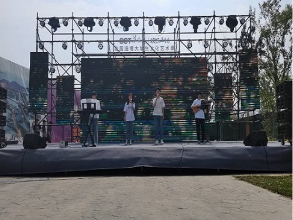 为积累社团经验,提高成员表演能力,发扬社团音乐精神,Aloha尤克里里社团于2021年5月5月30日上午参与由淄博市华侨城举行的首届大学生文化艺术节开幕式。相关单位负责人、各高校团干部、全市大学生代表等300人参加开幕式。Aloha尤克里里社团主唱李阳、孟露,钢琴手孙佳怡到场表演,会长袁爽爽到场指点。