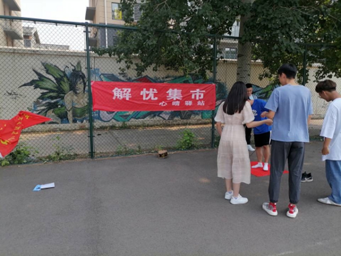 5月30日下午,心晴驿站于东校区排球场举办“解忧集市”活动。此次解忧活动希望通过写信倾诉、做游戏等途径去化解同学们的烦恼,为同学们提供咨询。