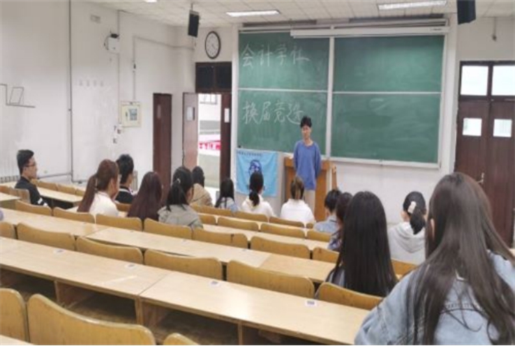 换届竞选通知下达后,准备参加竞选的成员认真准备竞选发言,准时到达通知地点。此次竞选的职位有副会长、各个部门的部长、副部长。由蒋玉金向参加竞选的成员介绍竞选要求以及各职位的工作内容。竞选开始后,成员踊跃上台发言,首先进行自我介绍,然后讲述自己加入会计学社以来的经历和自己参加心仪职位竞选的优势,以及竞选成功后在职期间的打算。参与成员的发言有理有据、各有优势。现场气氛活跃且紧张。