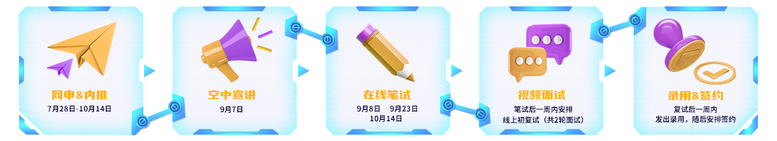 视频面试笔试后一周内安排线上初复试(共2轮面试)