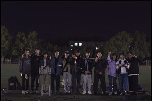 晚上九点半路演结束,同学们陆续离开。最后,Aloha尤克里里社团全体成员在活动现场留影纪念。